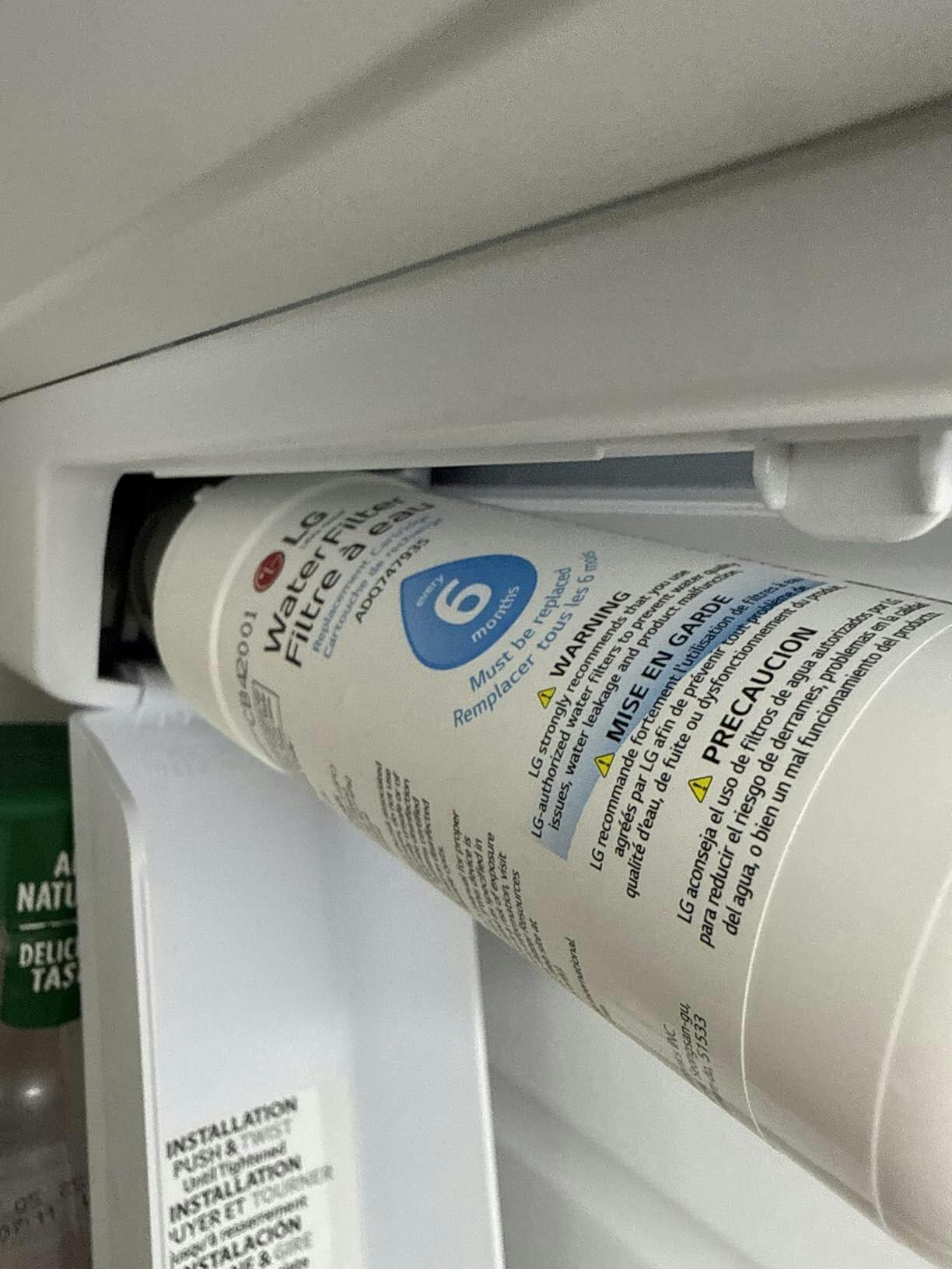 A: Open your refrigerator, twist the old filter counterclockwise, remove it, insert the new LG LRSXS2706B filter replacement, and twist it clockwise until it locks securely.
